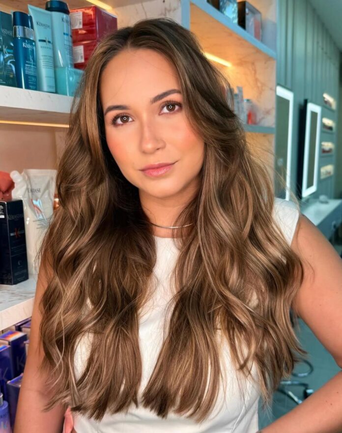 Entre as chamadas “morenas iluminadas”, tonalidades como chocolate, canela, avelã e mel fechado continuam em evidência, oferecendo profundidade e sofisticação sem descaracterizar a base escura do cabelo.